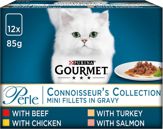 GOURMET Perle Connoisseur's Duo Mini Fillets in Gravy Wet Cat Food 12x85g (Pack of 4)