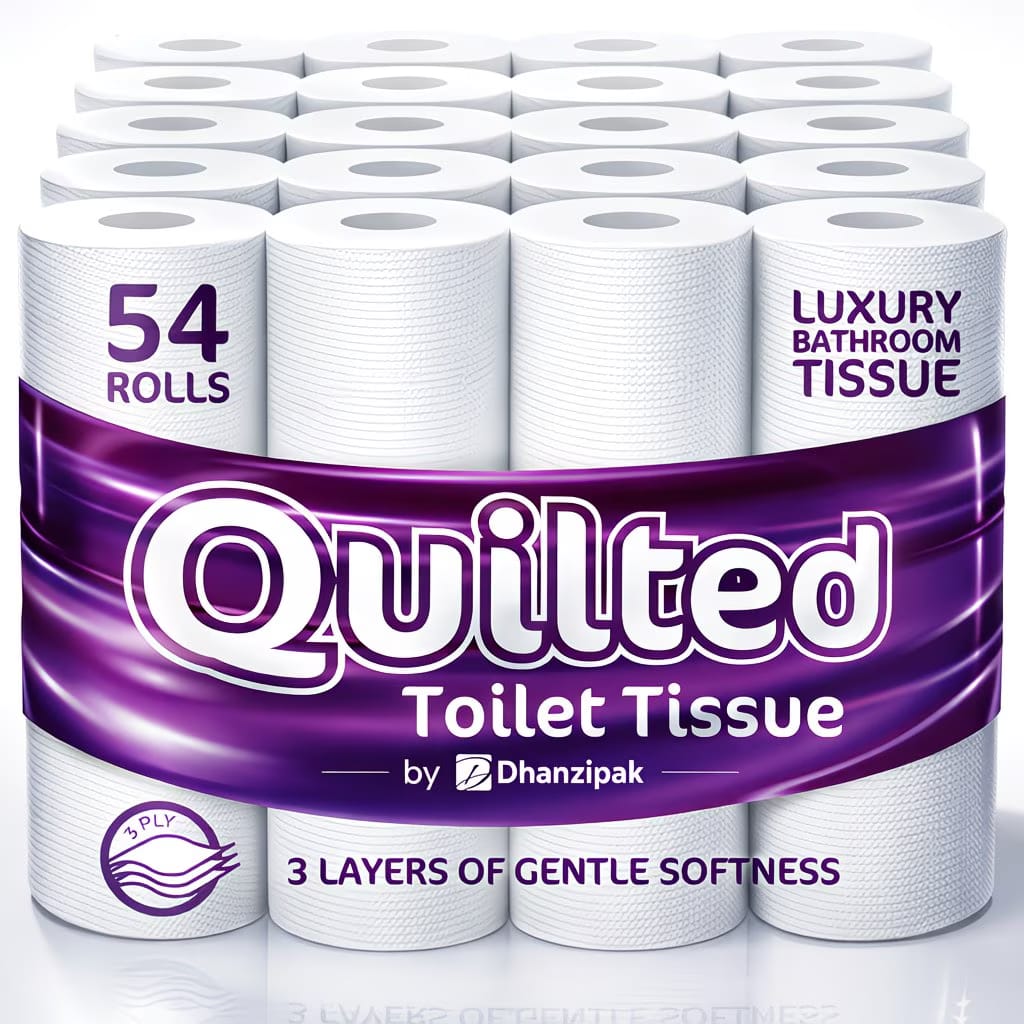 Premium Quilted Toilet Paper 18 Rolls of 3-Ply | Generous Length per Roll | Luxuriously Soft, Strong & Highly Absorbent Toilet Tissue