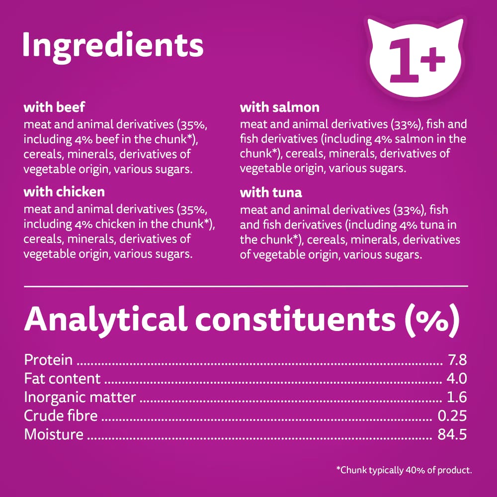 40 X 85G Whiskas 1+ Mixed Menu Mixed Adult Wet Cat Food Pouches in Jelly